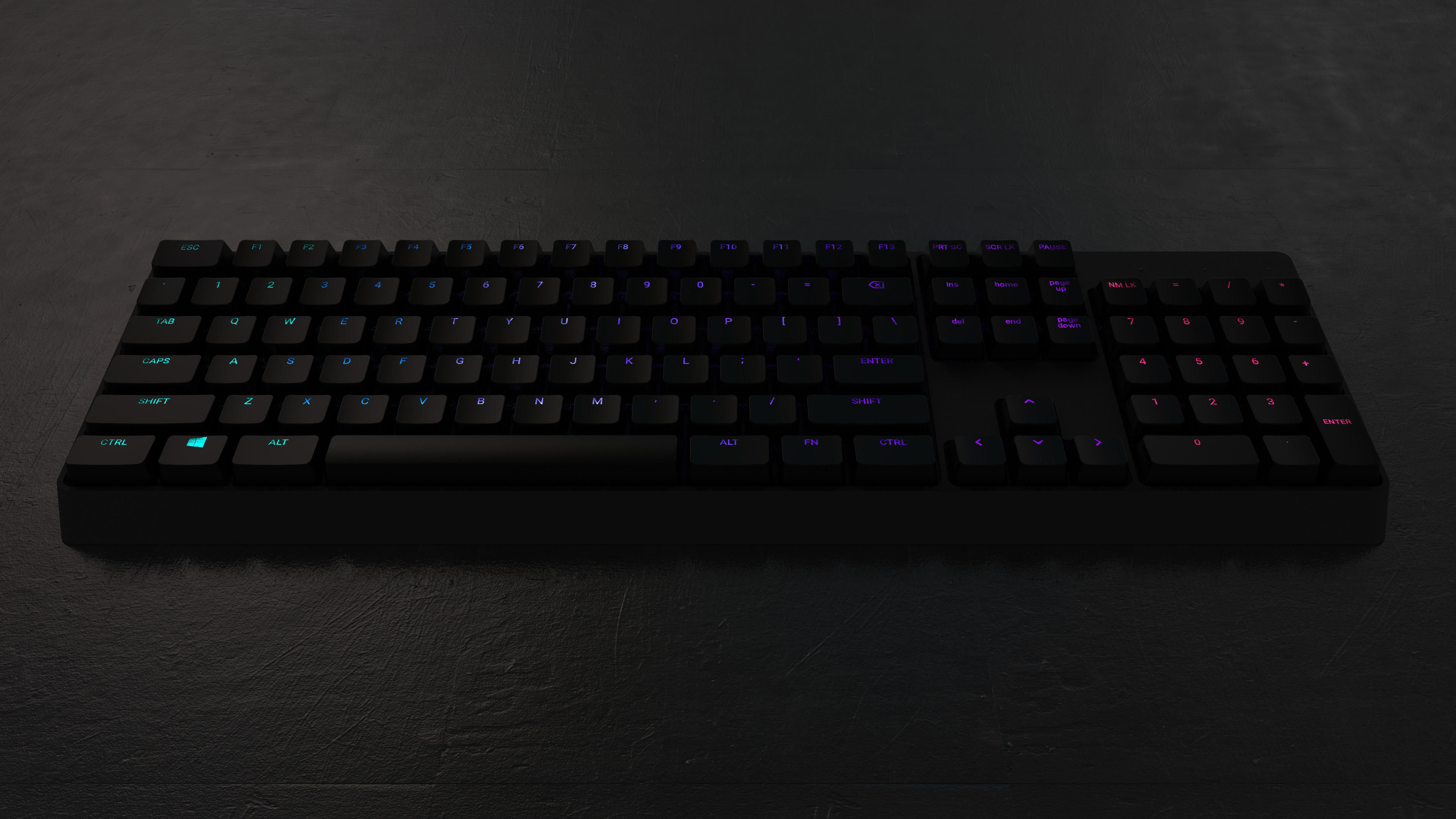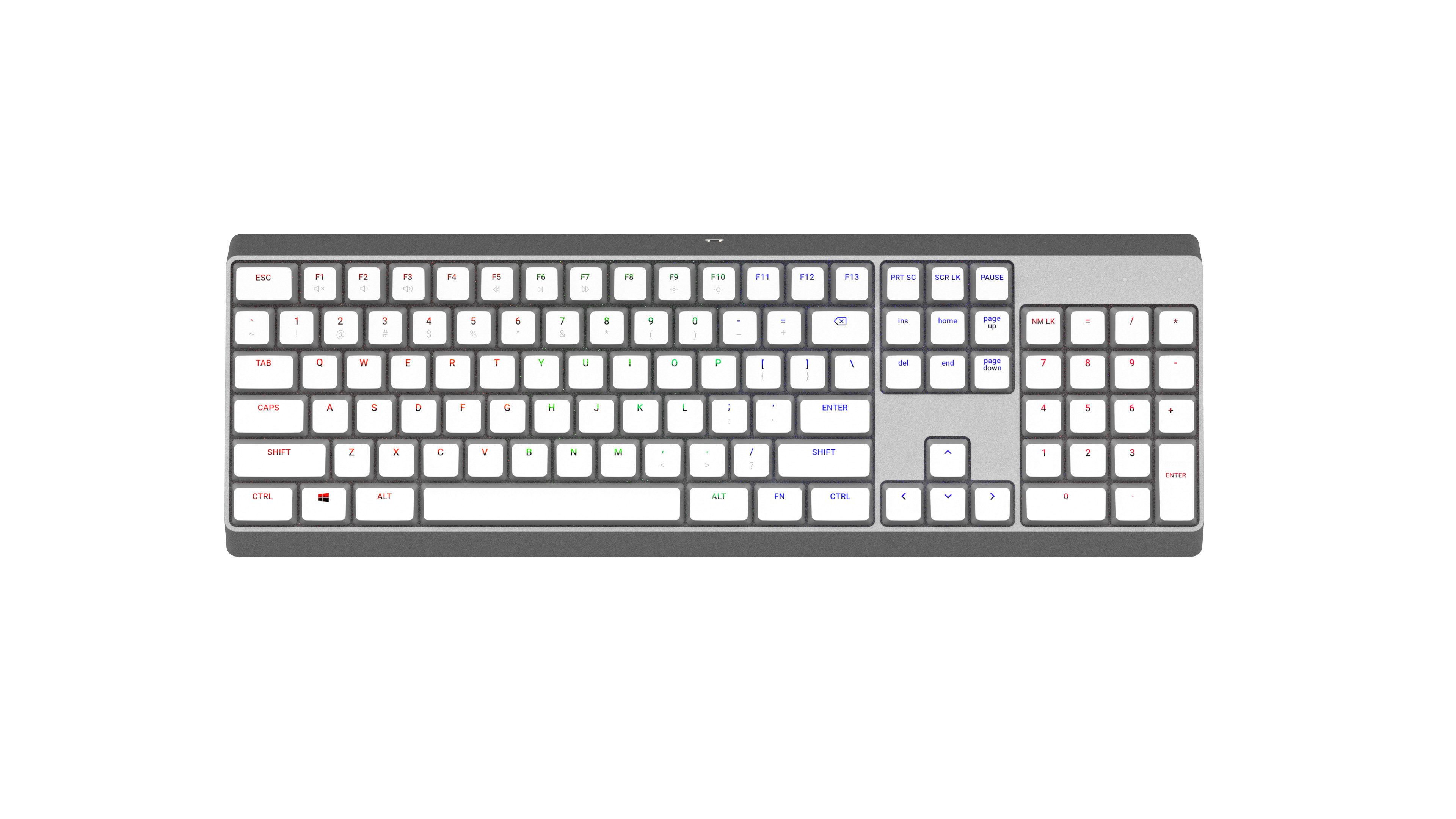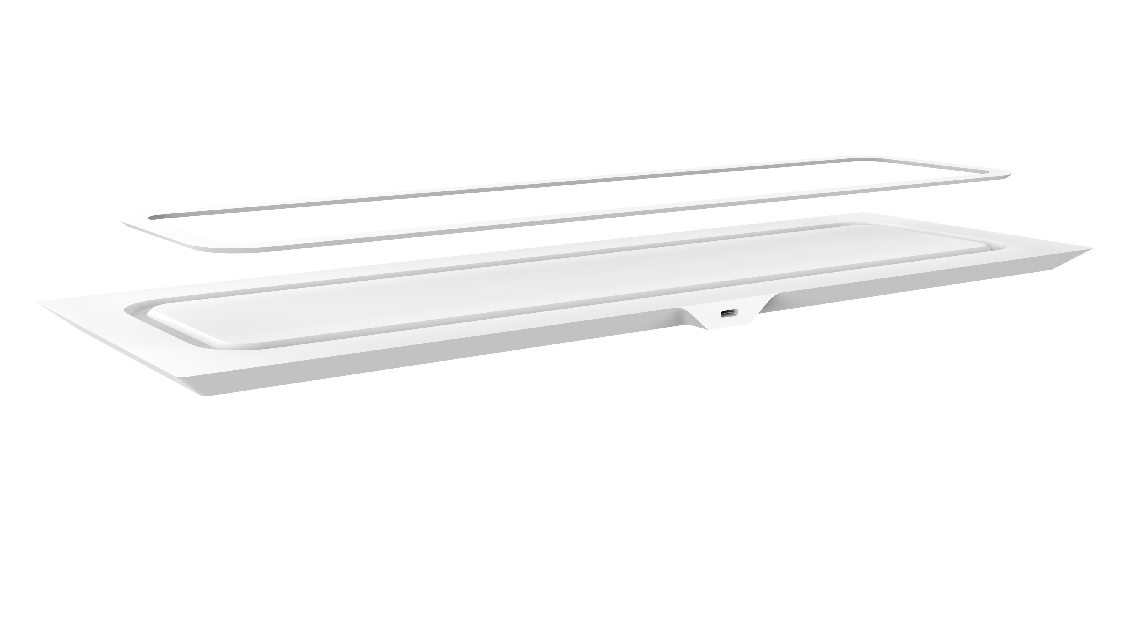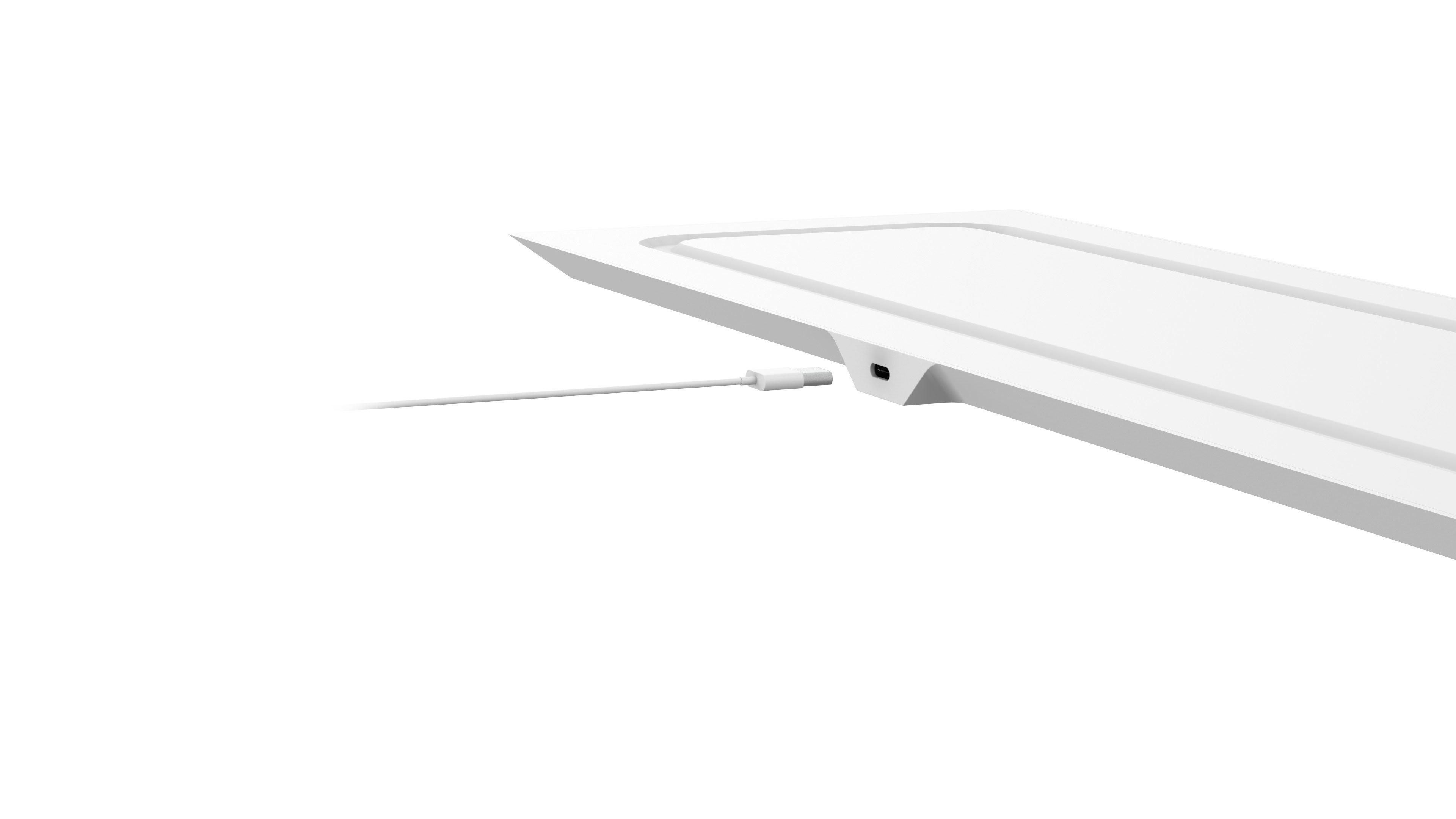Een draadloos toetsenbord opgeladen door het bureau. 2019.